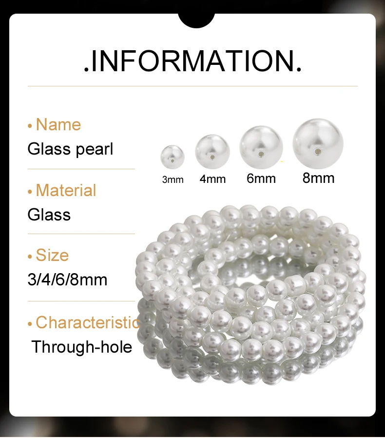 Acmore Crystal 3mm/4mm/6mm/8mm White Glass Imitation Pearl Beads with Hole ABS Loose Beads for Jewelry Making Decoration Accessories 수량 늘림