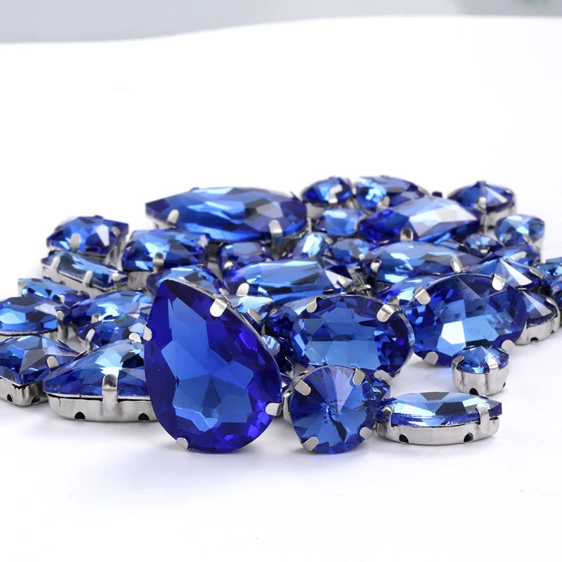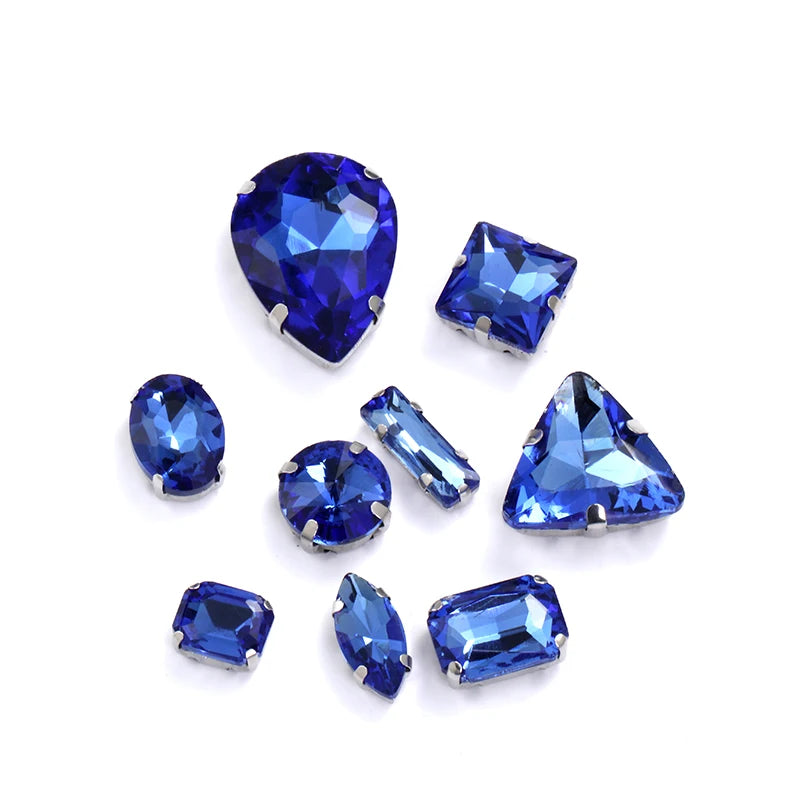 Blue Zircon / Random Mixed Shapes (50pcs) / Silver Claw