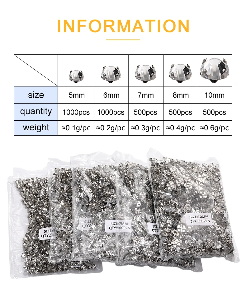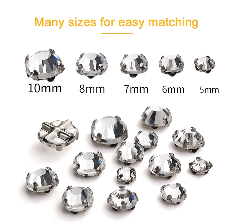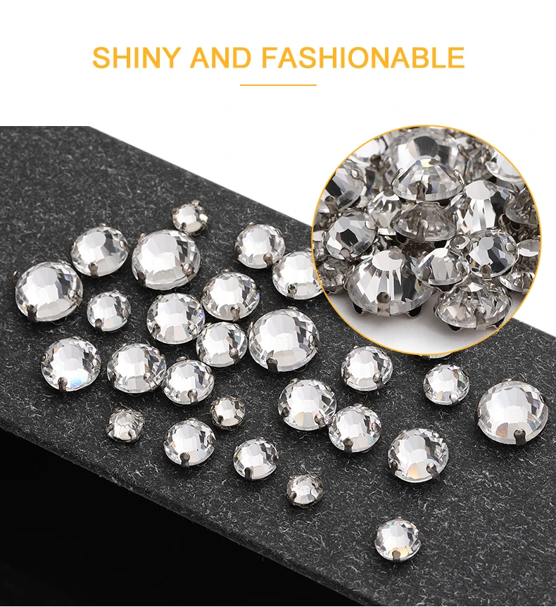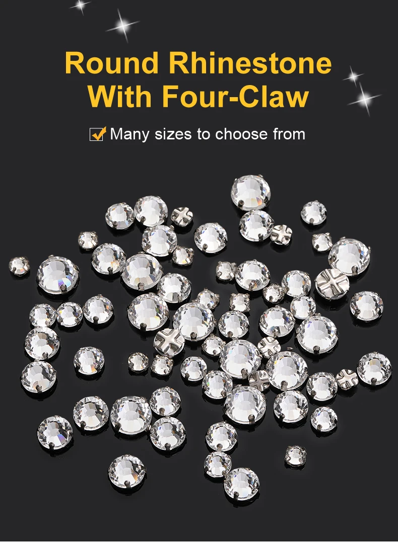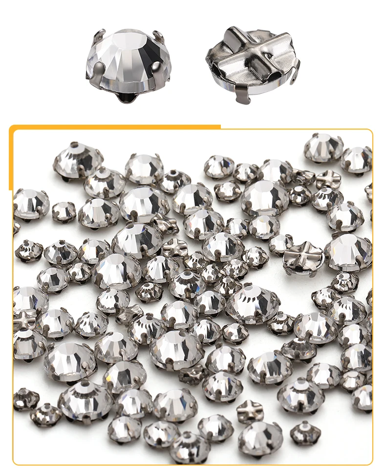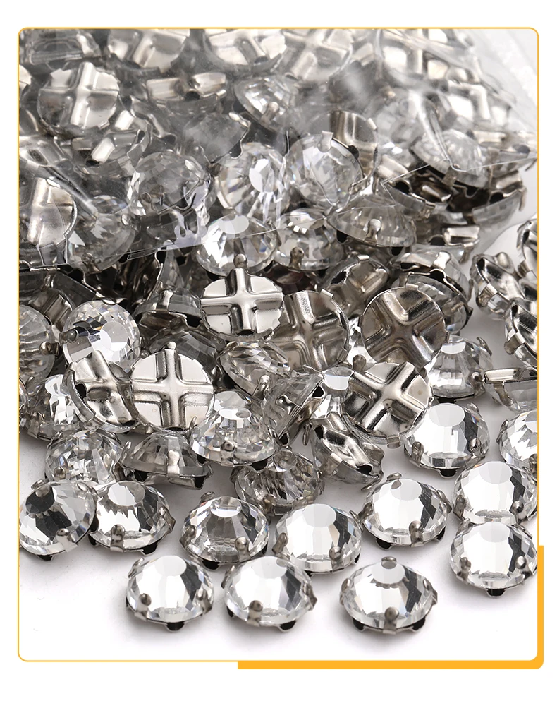 Xichuan Transparent Thickened Round Cross Copper Claw Rhinestone Silver Sew on Crystal Stones Dress Clothing-Diy Accessories