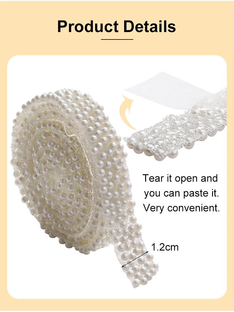 Xichuan Factory Customized 1.2cm Width ABS Imitation Pearl Rhinestone Tearable Strips DIY Jewelry Accessories for Shoes & Bag